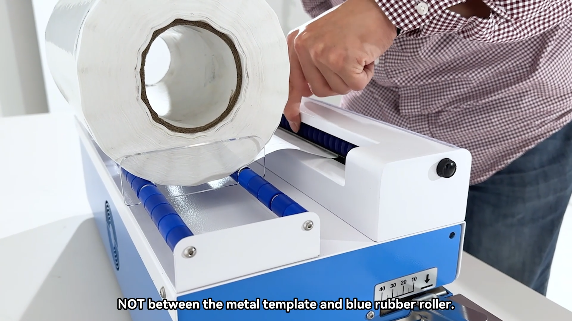 Feed sterilization roll(s) into the cutter